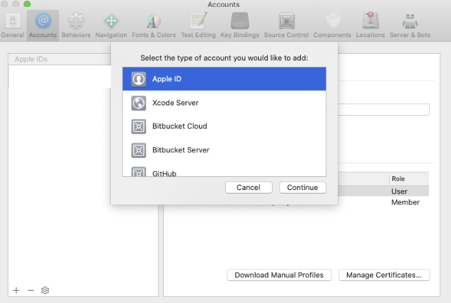 3. Go to XCode > Preferences > Click on the Accounts tab > Click on the + button (Figure 4)