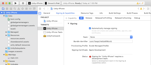 ![[iOS] Setting up your IDE (Xcode) for AR development](https://connect-mediagw.unity.com/h1/20201103/learn/images/475139b8-238f-49f6-8418-40cc087f7386_98.png)