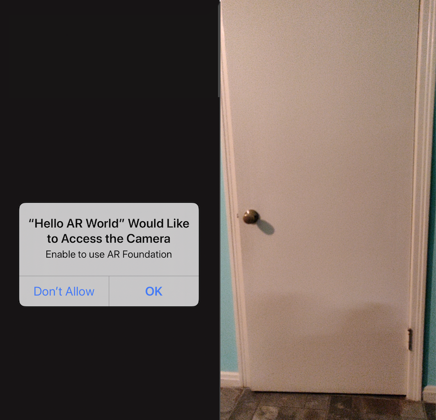 4. NOTE: If you do not see any errors, the Hello AR World application will run on your device. Your device may ask you to allow the application to Access the Camera. Tap on OK.