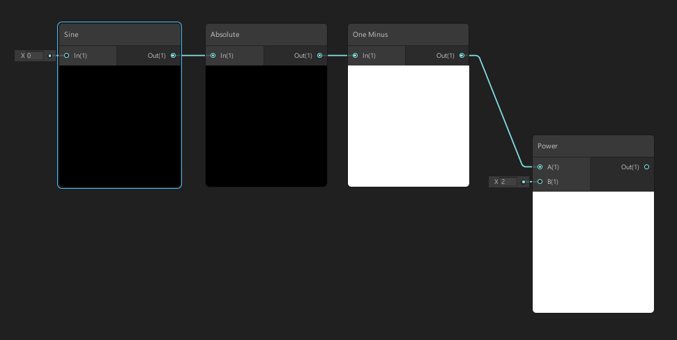 An example of using the Sine node is to create peaking waves for your Shader. To do this: