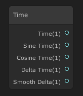The Time node provides access to various Time parameters in the Shader. This node has five outputs: