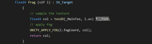 We want to pay attention to the fixed4 col variable. This variable defines how the color will be calculated and is returned at the end of the function to display the results to the screen.