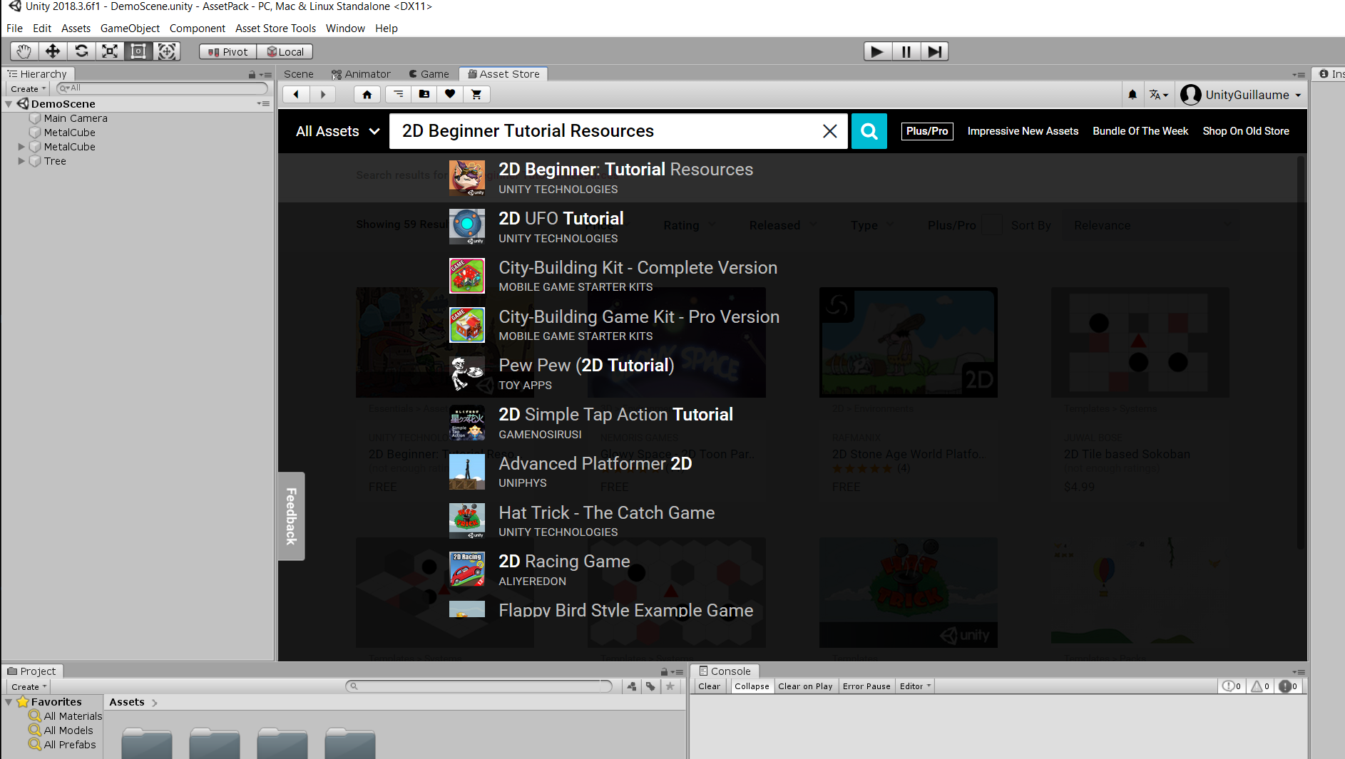 1. 在搜索栏中,输入“2D Beginner: Tutorial”,然后单击搜索结果。