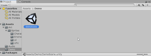 - 打开 Demo 文件夹,并双击 DemoScene。这样将会打开一个场景,供你在本教程的其余部分中用作演示场景。