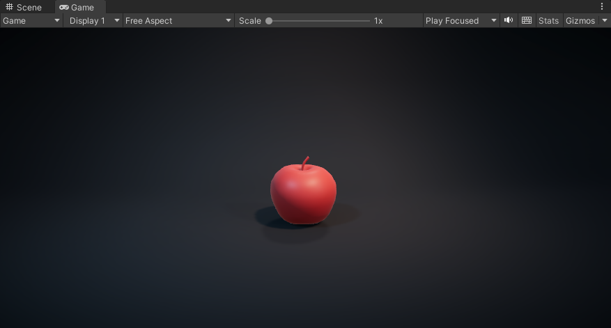 5. Select Play to enter Play mode and review the way that the apple is showcased by the lights. Consider the following questions: