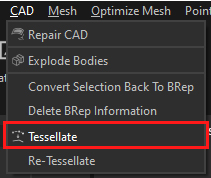 To tessellate a mesh, select the mesh (either in the 3D view or the Product Structure), and from the CAD dropdown, select Tessellate. (Figure 05)