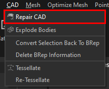 To repair a CAD mesh, select Repair CAD from the CAD dropdown. (Figure 03)