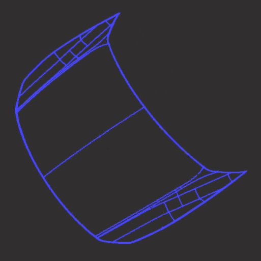 PiXYZ Studio represents surface edges as solid blue outlines. On a patch-based model, these should only be at the boundary edges of the mesh. Errant boundaries on surfaces (Figure 02) will cause cracks in the generated polygon mesh.