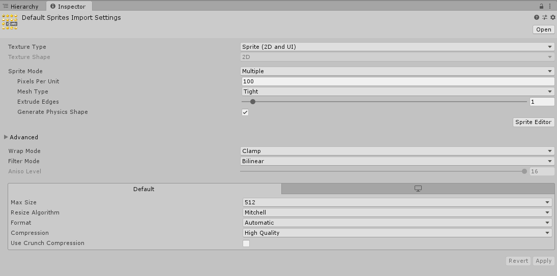 2. In Unity, click on the imported Sprite Texture and navigate to the Inspector.