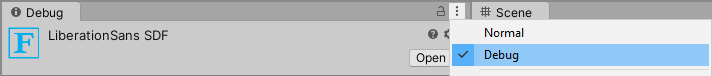 3. Click on the Font Asset in either the project Hierarchy or Inspector, click the three dot icon in the upper right of the Inspector, and switch to Debug (Figure 03).