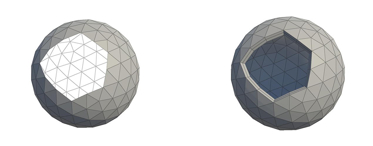 The thickness can be generated by scaling up or down in the normal direction of the original mesh, and you can also add a face to the cross-section of the generated thickness.