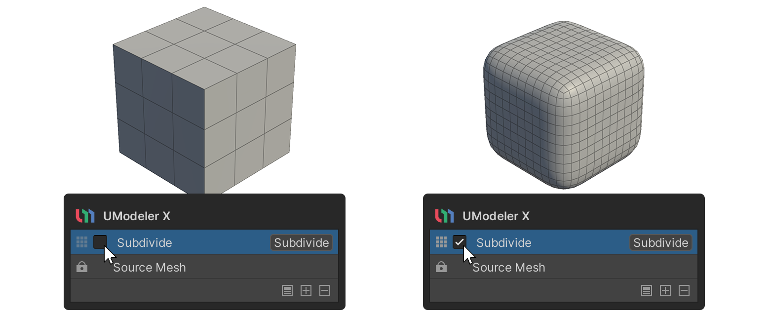 Modifiers are enabled by default upon creation, but you can choose to disable them, by disabling the checkbox next to the modifier’s name.