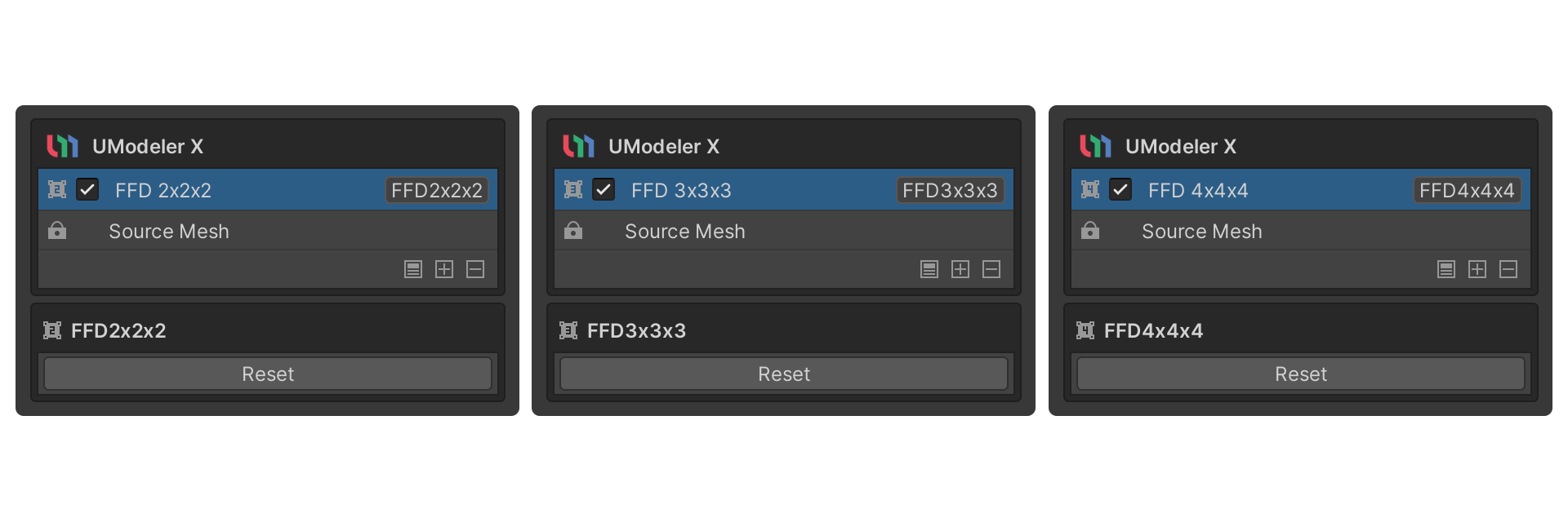 - Free Form Deformation (FFD) modifier: This modifier deforms shapes using a grid box surrounding the mesh and vertices that can manipulate the grid. The FFD modifier comes in three different modifiers based on the number of vertices that can be manipulated: the FFD 2x2x2, FFD 3x3x3, and the FFD 4x4x4. To deform an object using the FFD modifier, follow these instructions: