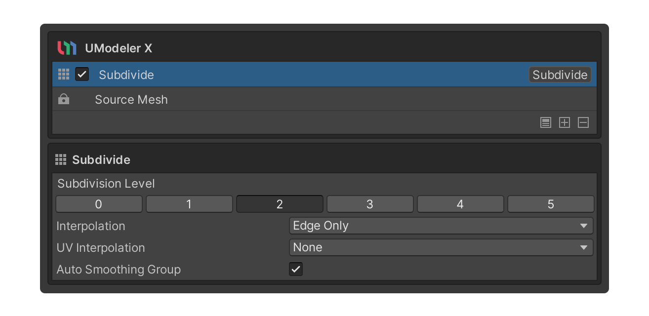 3. In the Subdivision Level property, to apply the desired level of subdividing, select the number button for that level.