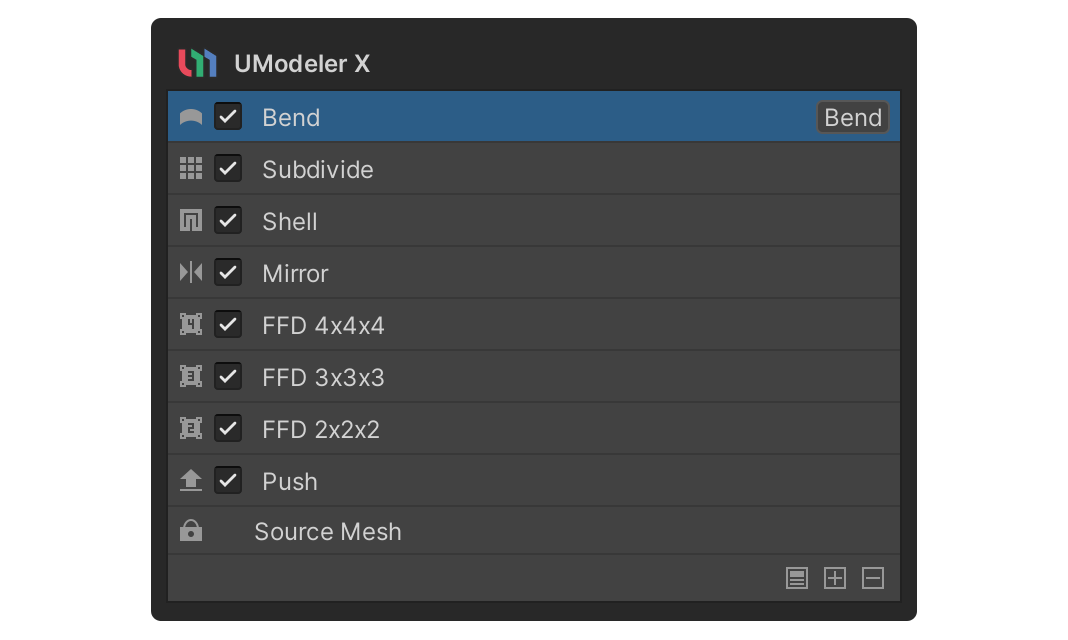 In this tutorial, you will learn how to use the Modifier System in UModeler X to apply various transformations to a 3D model while preserving the original model.