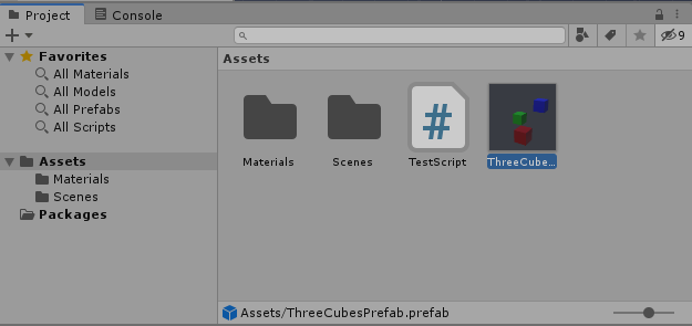 The Project window is the Unity equivalent of the Content Browser, and it shows all available Assets in the Project. There is a search functionality, and you can filter and save searches to make finding Assets easier. Additionally, any external packages used by the project show their assets in a separate folder below the Project Assets.