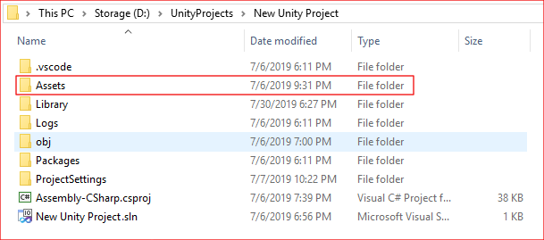 A Unity Project is set up in a similar manner as an Unreal project, but there is a major difference in the way that Assets are managed.