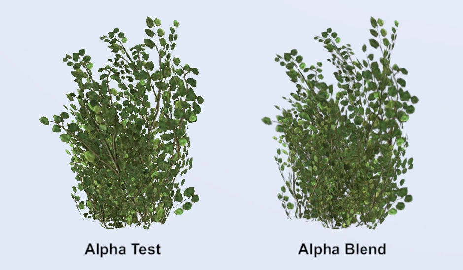 However, when the foliage is in motion, alpha blend looks incorrect. The leaves don’t render in a realistic order because the partial transparency will give a ghost-like effect while the foliage moves into and out of each other.