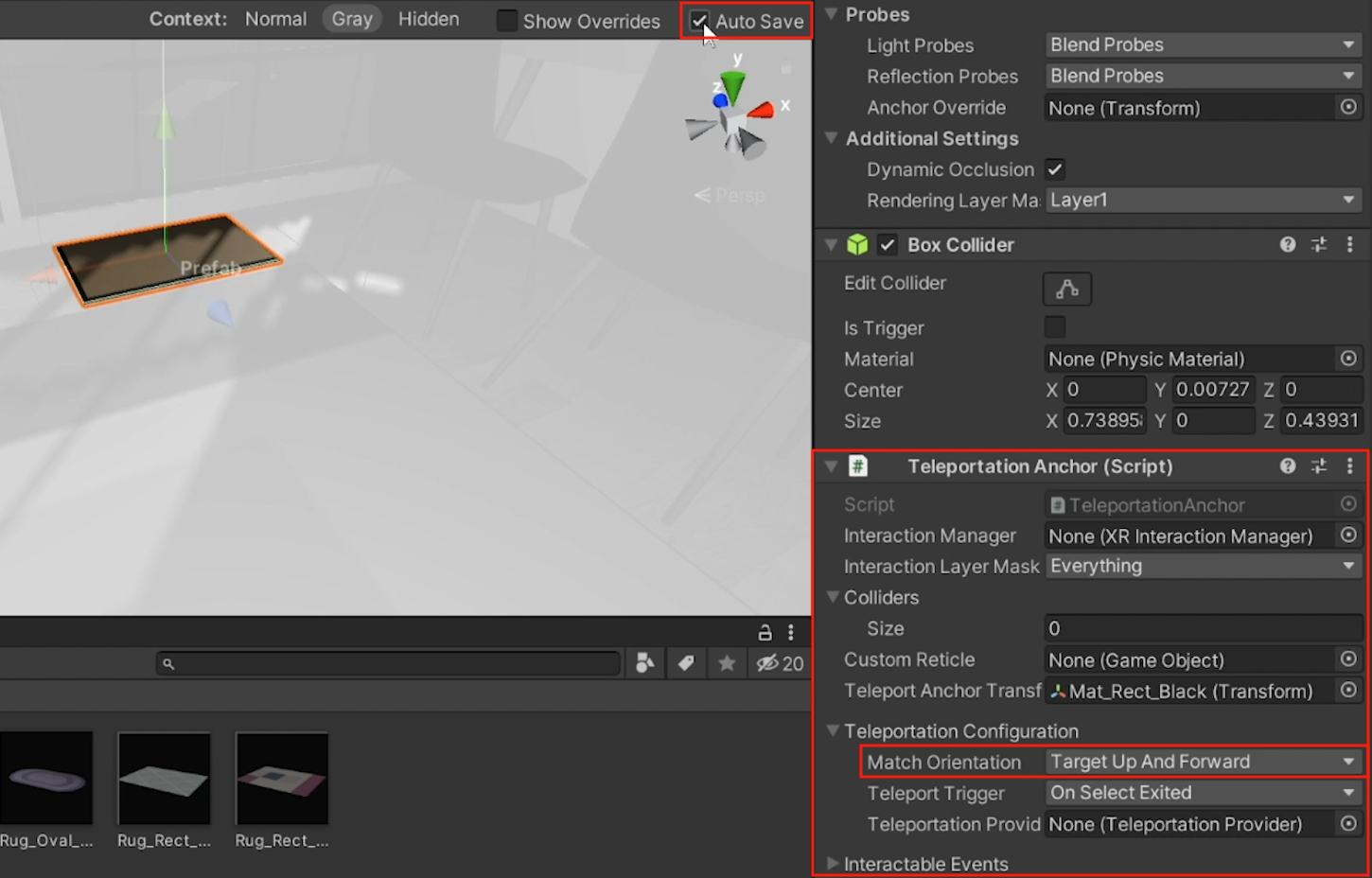 - On the mat Prefab, add a new Teleportation Anchor component.