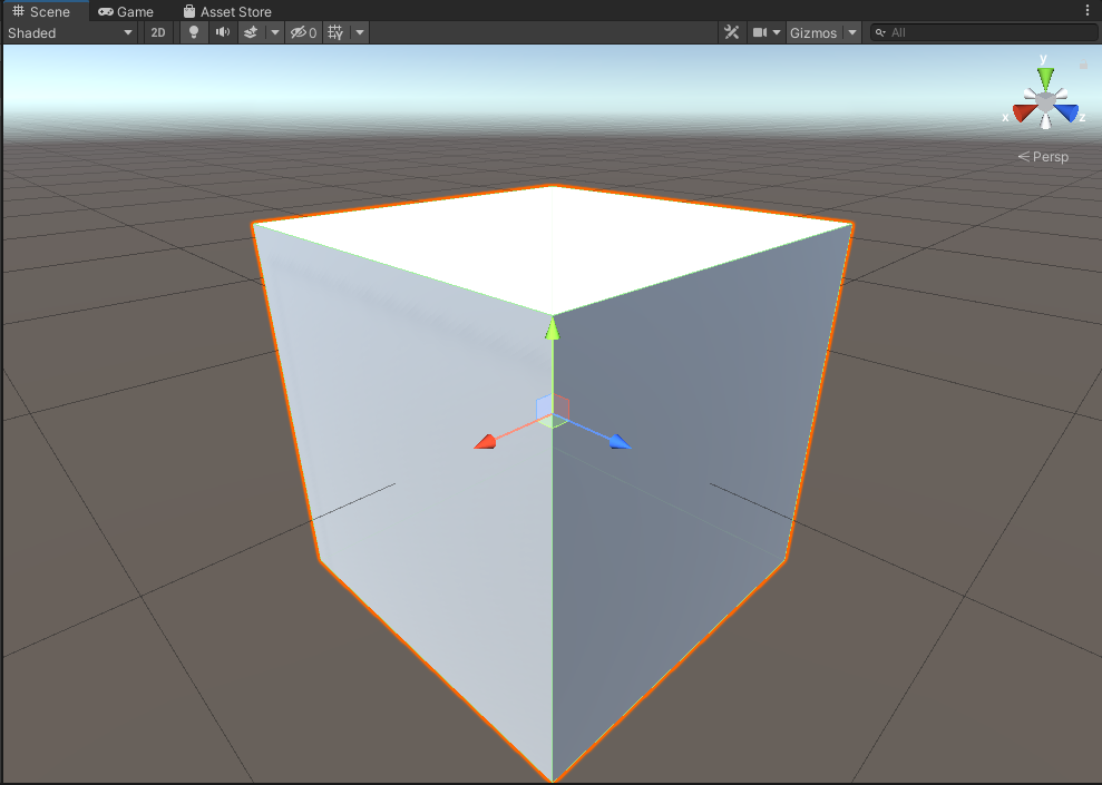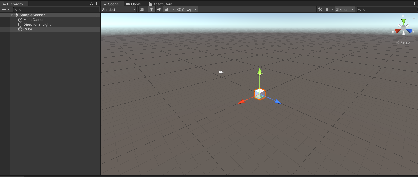1. In the Scene view, create a cube primitive if you haven’t already (GameObjects > 3D Object > Cube), and from the Hierachy select the Cube GameObject you have created .