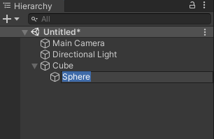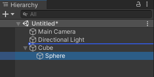 As shown in the Hierarchy, Sphere is a child GameObject of Cube. These two objects are now linked. You can operate on them as a unit.