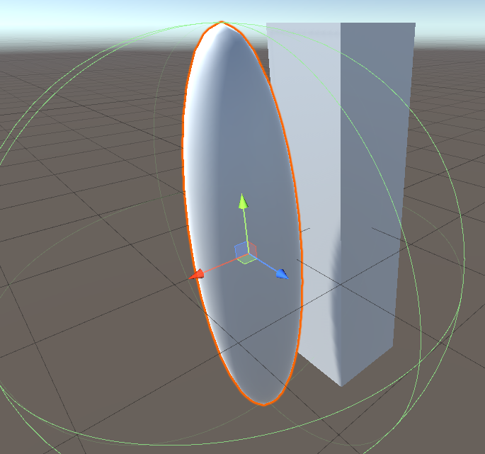 3. This sphere is inside the cube where you can’t see it. Select Sphere in the Hierarchy and the Gizmo will appear so that you can move it in the Scene view to a location at least partially visible outside of the Cube. It will be tall, not spherical, because its initial dimensions were based on its parent.