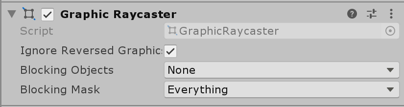 The Graphic Raycaster allows UI components within a Canvas to communicate with each other by forming a connection (called a “hit”) between a pointer position (such as a mouse or touch on a screen) and an object within your Scene.