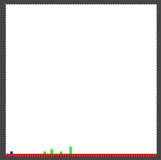2. Outside of Unity, create a 64x64 bitmap. Fill it with white and, using the hard pixel brush/pencil tool, draw some assortment of dots, lines, and shapes in two or three colors, making note of each color. Be sure that you’re not using anti-aliasing, but rather hard pixels (Figure 05).
