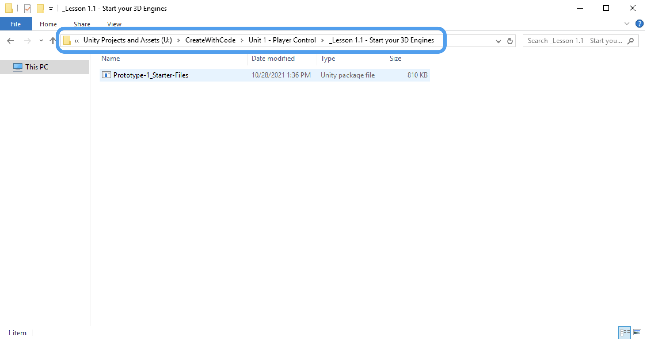 The resources in the ‘Unity Projects and Assets’ folder are Unity package files and not project folders. Unity package files can be imported into new and existing projects.