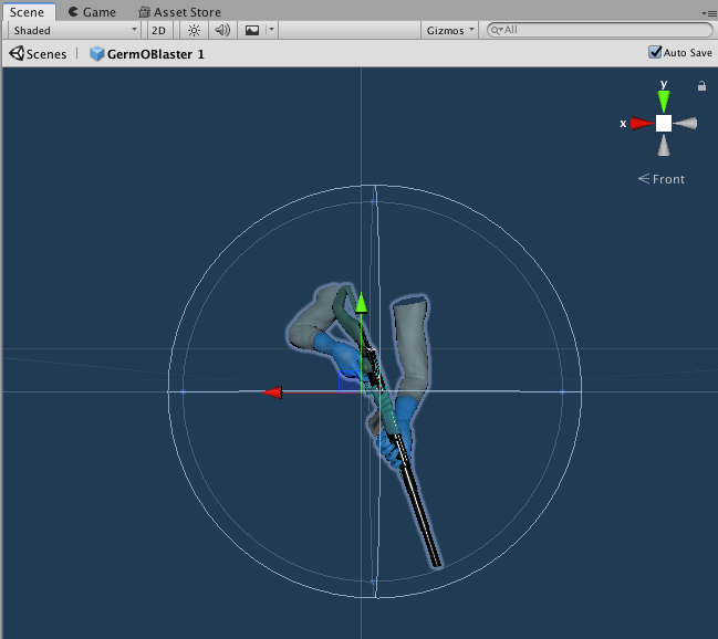 6.现在,你已经创建了一种新型武器,请使用键盘快捷键保存预制件,或单击 Scene 视图右上角的 Save 按钮。