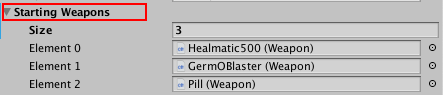 4.将 Size 从 3 更改为 4。这将在关卡开始时为玩家提供四种武器。