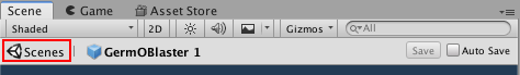 7.单击 Scene 视图左上角的 Scenes 以退出预制件模式。