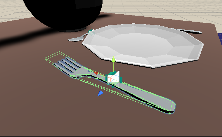 Test the experience again. The fork should now fall whenever you release it and collide with the table and any other object.