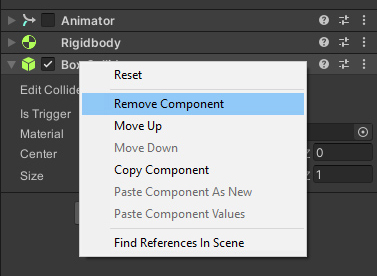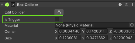 If ‘Is Trigger’ is false (not checked) this collider will react to physic collisions.