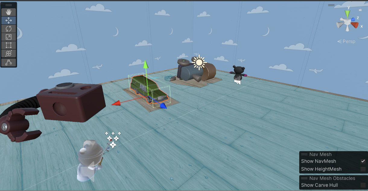 - Since it is a moving obstacle, it cannot be marked static and baked into the NavMesh